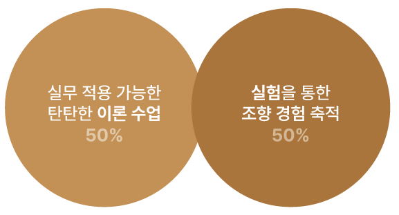 실무에서 활용하는 조향 이론을 습득하고 향 처방(Formula) 작성을 위한 기본이 되는 어코드를 제작하는 실험을 통해 조향의 경험을 키울 수 있습니다.